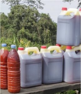 Aujourd’hui, le paysage agricole de Dibombari évolue. Aux côtés des grandes exploitations industrielles, on observe la montée des plantations villageoises et familiales. De nombreux habitants transforment désormais leurs terrains en petites palmeraies de 1 à 5 hectares, parfois davantage. Cette dynamique est soutenue par la possibilité de vendre les régimes de noix, de produire de l’huile rouge artisanale ou encore de commercialiser les amandes de palmiste.